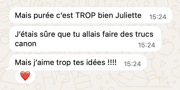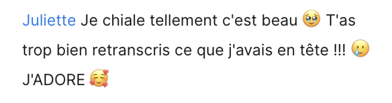 Julia & Julie | I don't think i feelJuliette est devenue une personne clé dans mon entreprise, et honnêtement, je ne pourrais plus travailler sans elle. Réactive, fiable, proactive, elle propose toujours des idées hyper pertinentes et trouve des solutions avant même qu'on en parle.